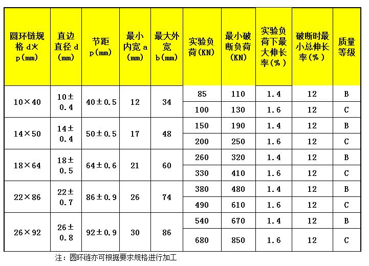 規(guī)格(mm) 寬度 圓弧半徑r(mm) 重量(Kg/套)試驗(yàn)負(fù)荷(KN) 最大試驗(yàn)伸長率(%) 最小破斷負(fù)荷(KN) 最小破斷伸長率(%)最小內(nèi)寬 最大外寬