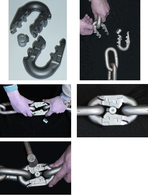 1、將接鏈環兩半部分分別掛在鏈環上