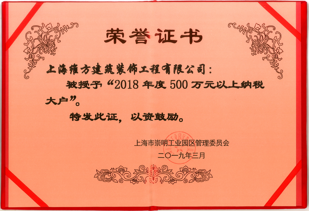 公司獲2018年度崇明工業(yè)園區(qū)納稅大戶榮譽(yù)稱號(hào)