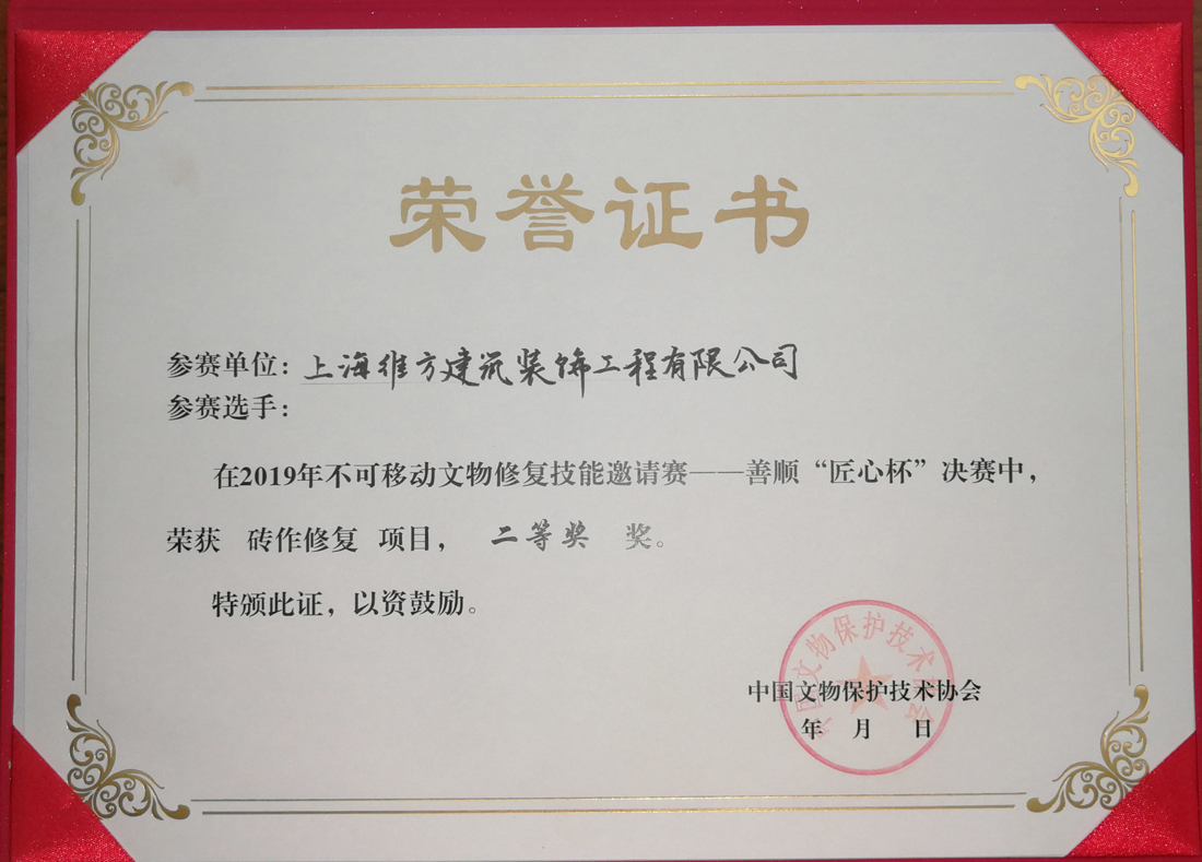 公司榮獲2019年不可移動(dòng)文物修復(fù)技能邀請(qǐng)賽二等獎(jiǎng)