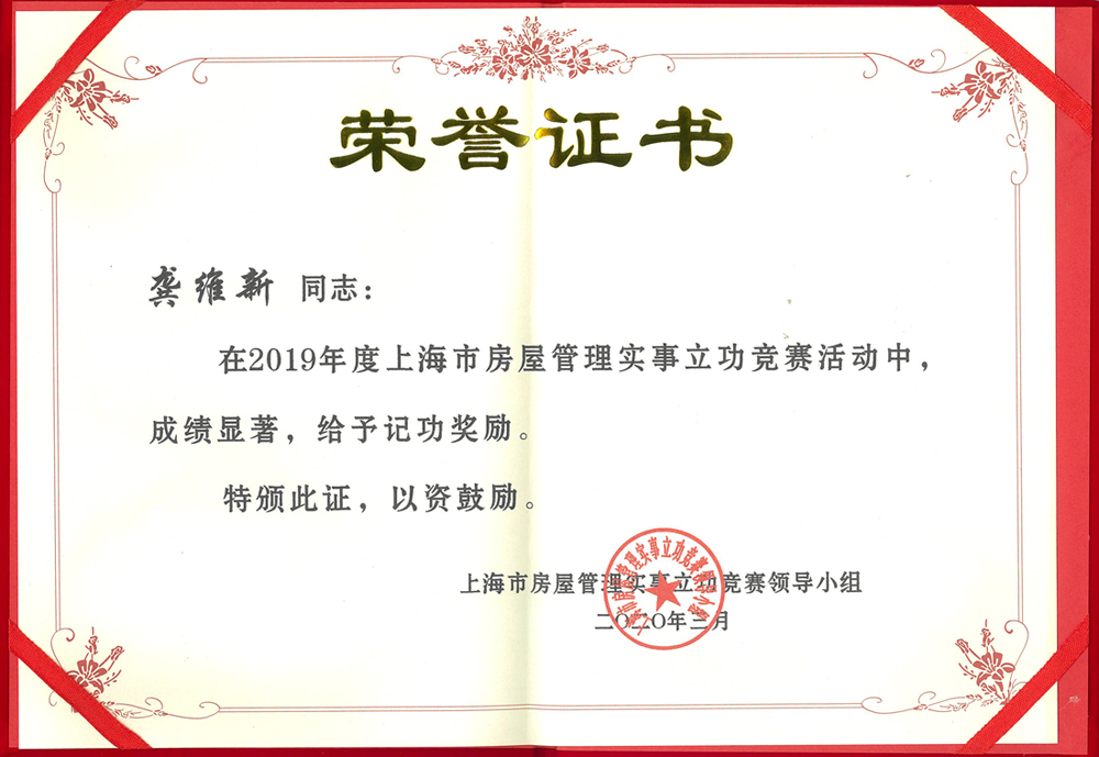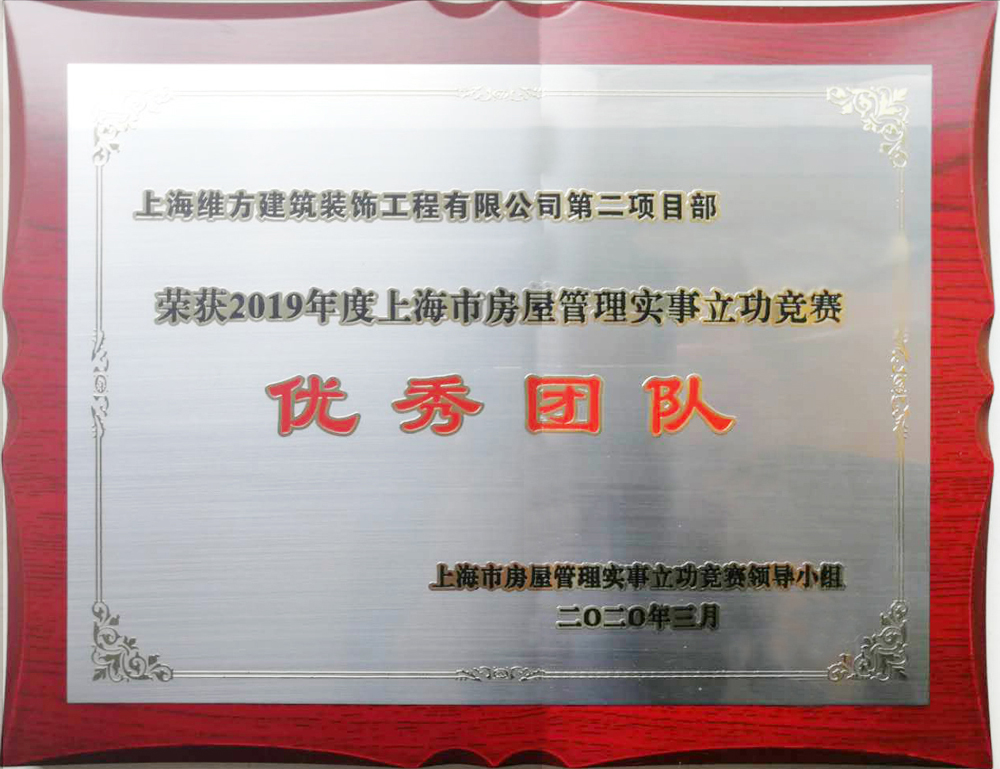 公司第二項目部獲2019年度上海市房屋管理事實立功競賽城市更新分賽區(qū)優(yōu)秀團(tuán)隊稱號