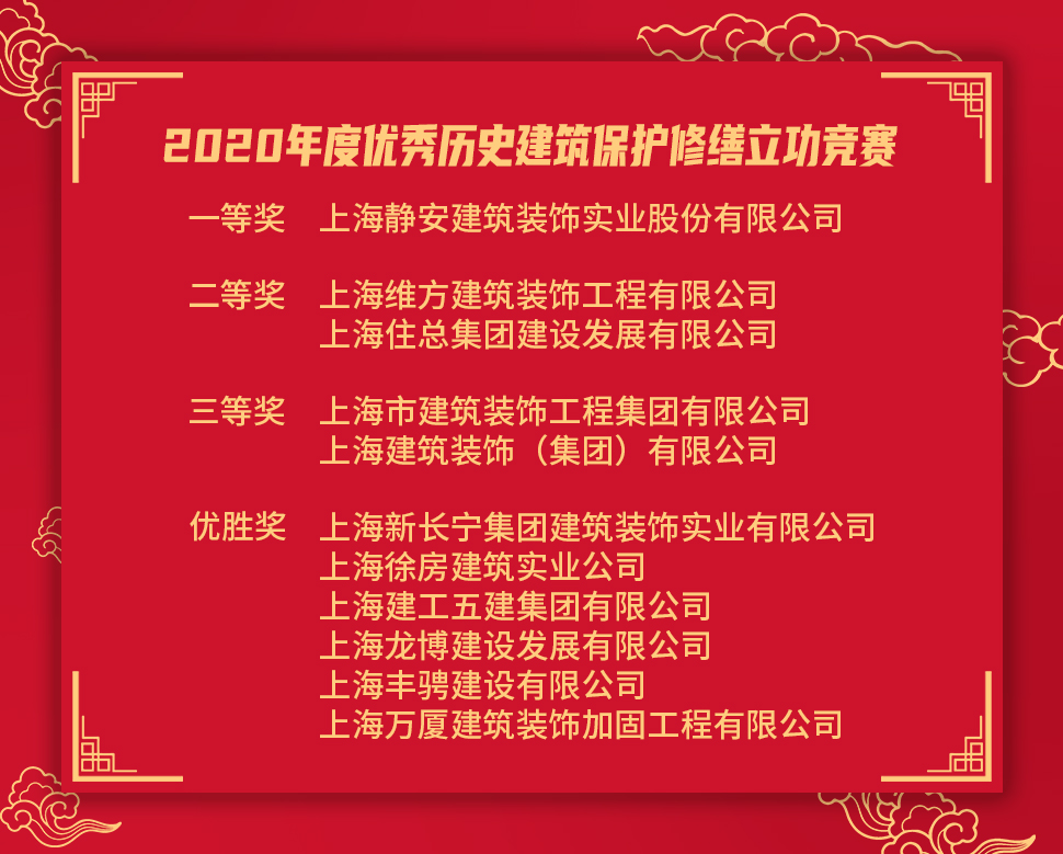 我司榮獲“2020年度優(yōu)秀歷史建筑保護修繕立功競賽”二等獎