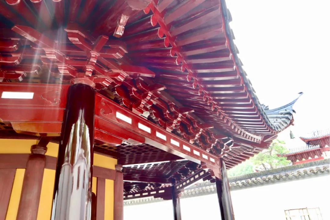 ? ? ? ??闌額,是中國古代建筑中柱子上端聯(lián)絡與承重的水平構件。繼1954年修繕后,本次龍華塔保養(yǎng)維護,參照《營造法式》上的油漆方法,恢復宋制“七朱八白”粉飾方式,使千年古塔重現(xiàn)古樸原貌。