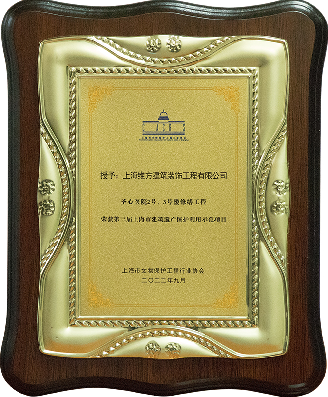 ? ? ? ??其中,維方公司參與修繕的“龍華塔保養(yǎng)維護(hù)工程”及“圣心醫(yī)院2號(hào)、3號(hào)樓修繕工程”獲得該項(xiàng)殊榮。